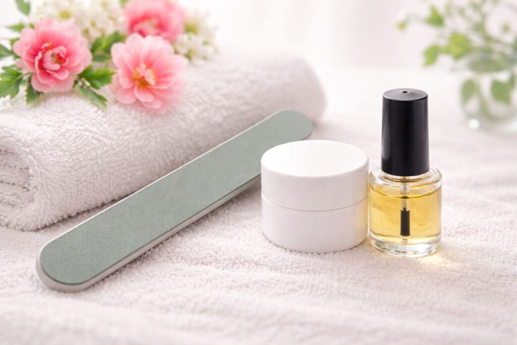 säubern  der Nagelränder  und des  Nagelfalzes ,  Entfernung  abgestorbener Nagelhaut